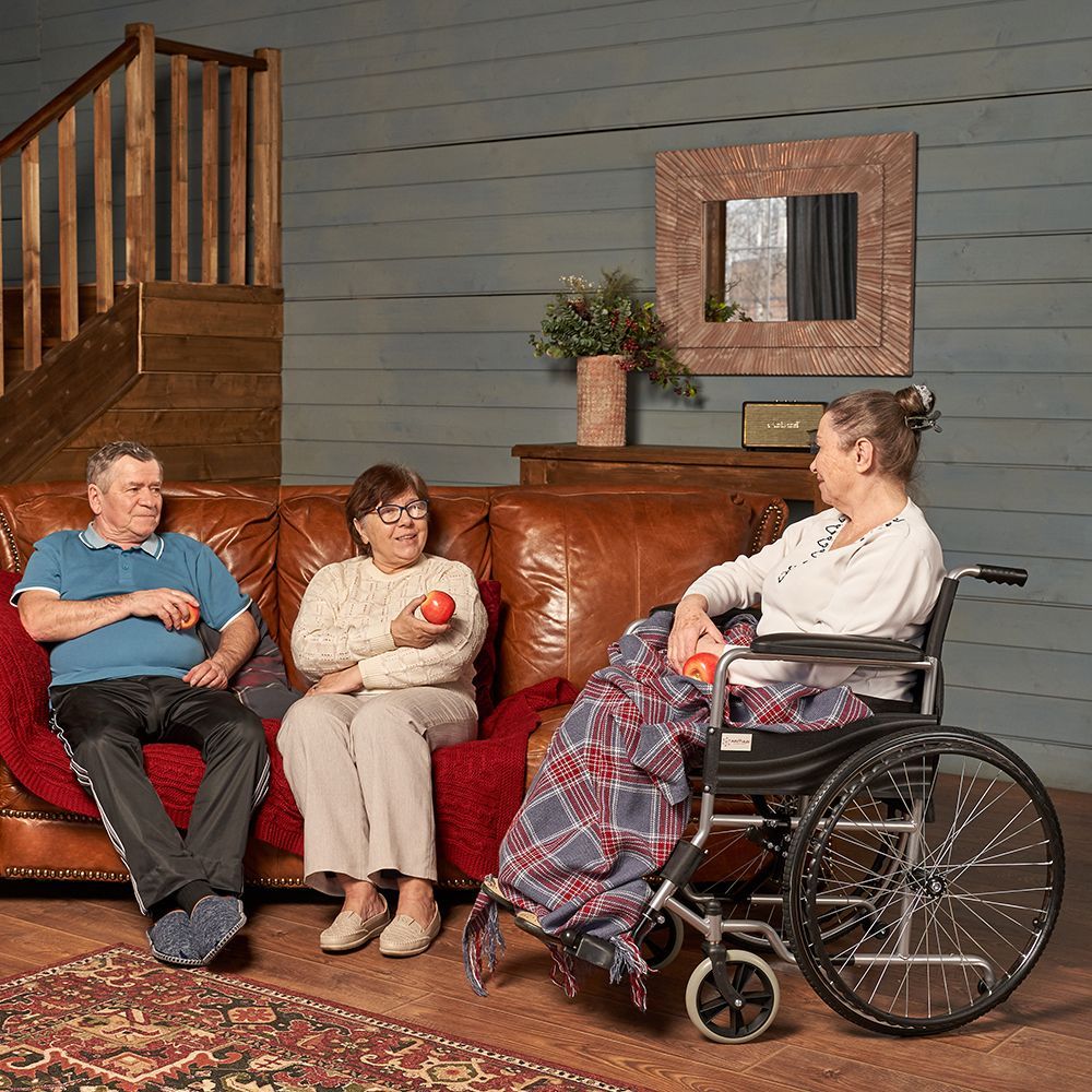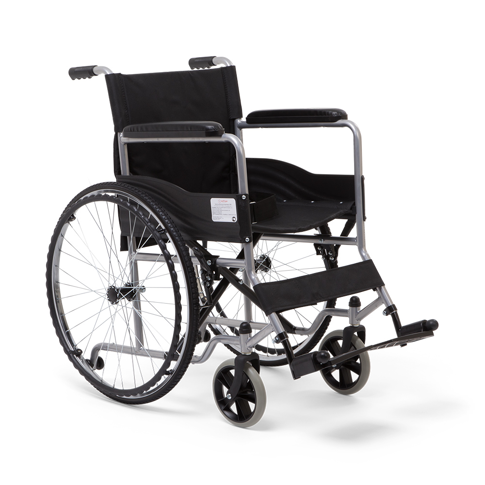 Механическая коляска, пожалуй, самый бюджетный вариант для самостоятельного передвижения в помещении. При этом она очень удобна для пациента. Модель укомплектована цельнолитыми колесами.