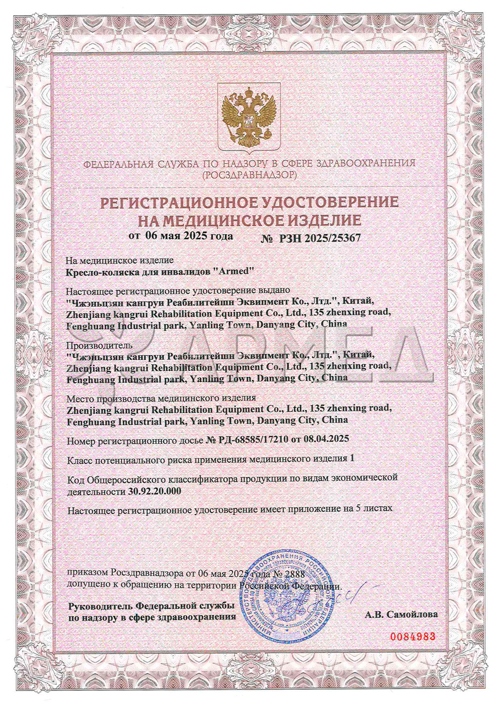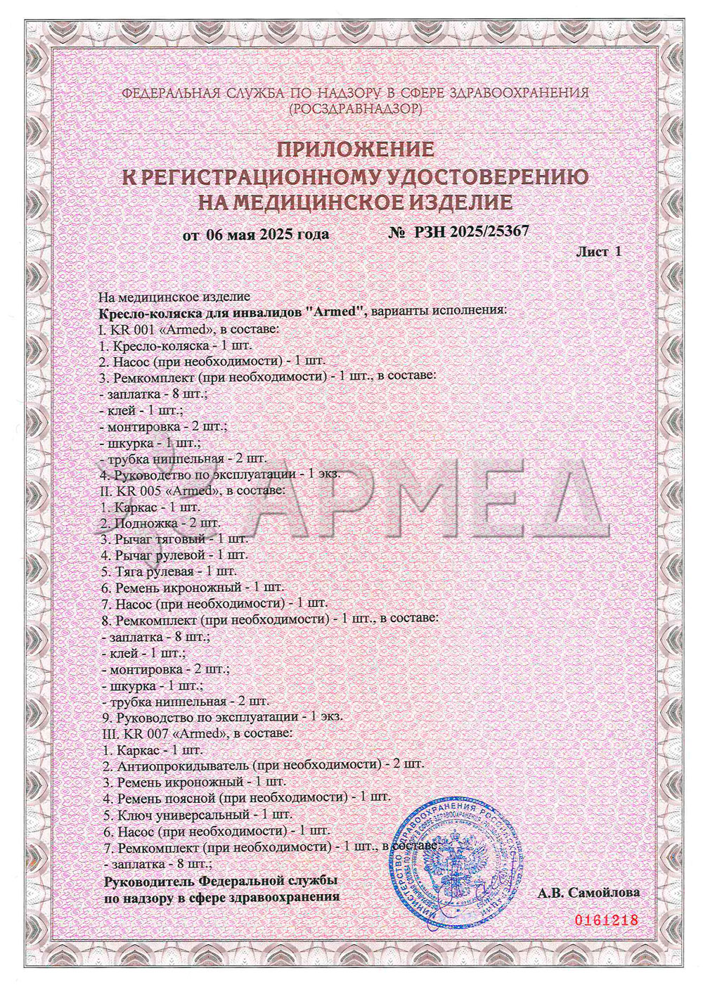 Полное наименование: Кресло-коляска для инвалидов «Armed»: KR 001 "Armed"