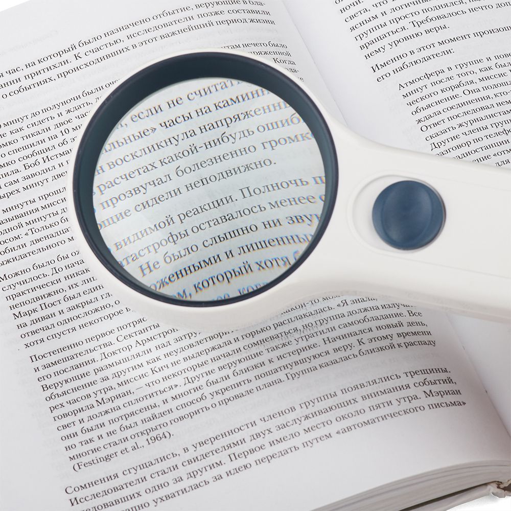 Увеличительная лупа незаменима в быту для пользователей с плохим зрением. Данная модель выделяется яркой светодиодной подсветкой, которая работает на батарейках.