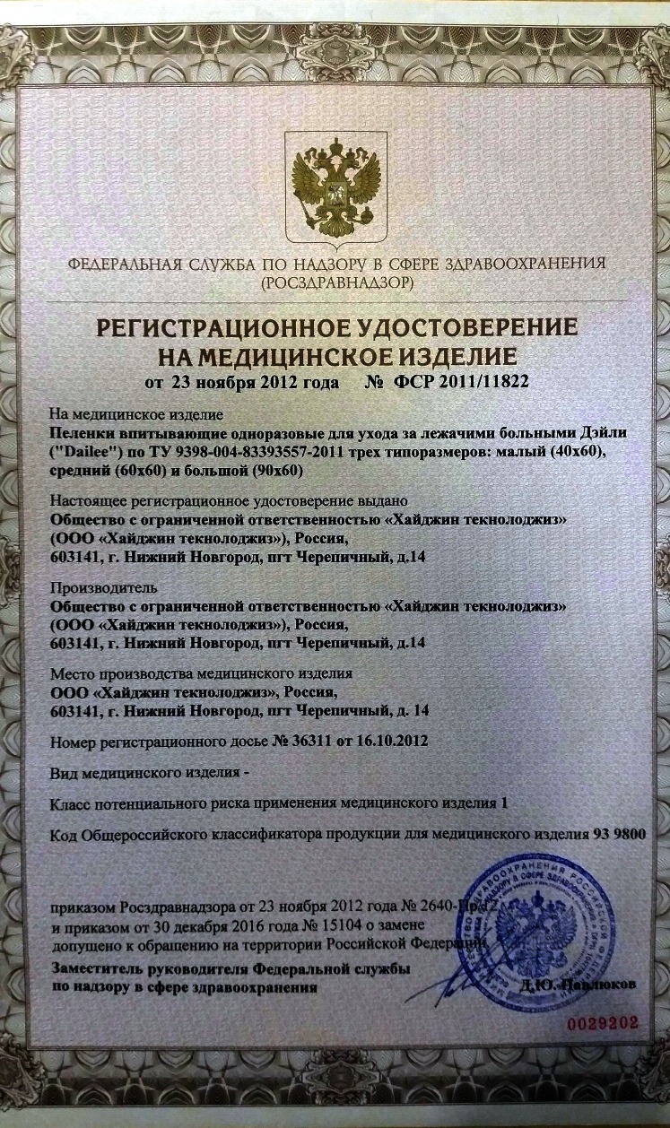 Регистрационное удостоверение ФСР 2011/11822
