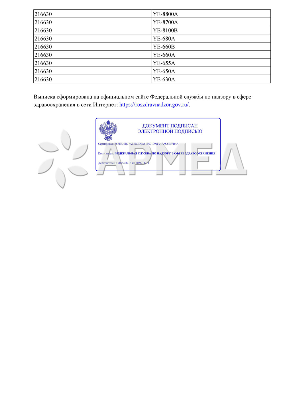 Регистрационное удостоверение ФСЗ 2011/11242